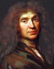 Jean Baptiste Poquelin, francuski komediograf i glumac. U brojnim farsama, komedijama u stihu i prozi genijalno kritizirao francusko društvo 17. st. izvrgavajući ruglu staleške predrasude i beskrupuloznost društva, prikazujući ljudske mane od hipokrizije do škrtosti. Veliki majstor komedije, izvršio golem utjecaj na njezin razvoj u svjetskoj književnosti.