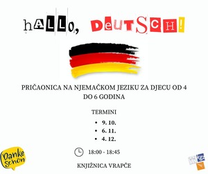 Dragi roditelji, pokrećemo pričaonicu na njemačkom jeziku za djecu od 4 do 6 godina.Prijave za pričaonicu u knjižnici Vrapče primamo putem: