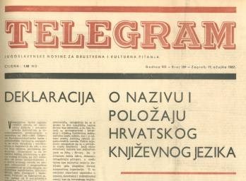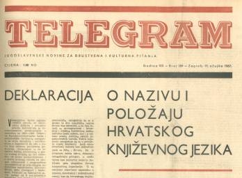 Dana 17. ožujka 1967. na naslovnici časopisa Telegram : jugoslavenskog časopisa za kulturna i društvena pitanja objavljena je Deklaracija o nazivu i položaju hrvatskog književnog jezika.U drugoj polovici 1960-ih godina dominantan je stav da su hrvatski i srpski dvije varijante istog jezika, jekavska i ekavska. U praksi je to značilo uporabu ekavske varijante odnosno srpskog jezika u diplomaciji i službenim prilikama čime je hrvatski doveden u neravnopravan položaj.