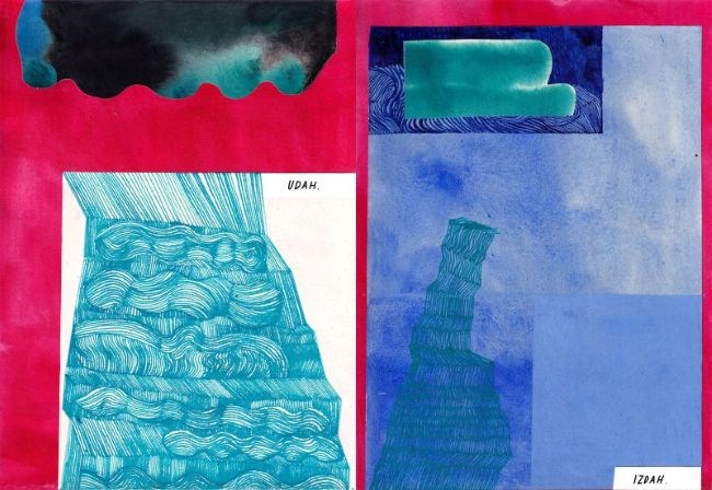 Želja za promjenom na siječanjskom početku godine gotovo je stalno mjesto suvremenog iskustva. No možda, umjesto da se iznova okrećemo prema sebi u nastojanju da dosegnemo nikada u potpunosti ostvarivu „bolju verziju“, vrijedi obrnuti perspektivu i okrenuti se prema van - prema drugome. Na tragu onoga što je filozofkinja i spisateljica Iris Murdoch nazvala „razsebljivanjem“ - okretanje pažnje prema svijetu izvan sebe, obitelji, prijateljima, prirodi i društvu. U umjetničkoj knjizi Putopisi Apolonije Lučić taj se pomak gotovo intuitivno ostvaruje kroz strukturu koja započinje razgovorom protagonistkinje s psihoterapeutkinjom, da bi se postupno udaljila od dominantnog introspektivnog registra i otvorila prema vanjskom prostoru. Naime, dijalog se više ne odvija u odnosu sa sugovornicom, već se premješta u okolinu, kretanje te unutarnje i vanjske prostore, unutar kojih tekstualni fragmenti egzistiraju kao kratki iskazi, bilješke ili misli. U ovakvoj vizualno-poetskoj konstelaciji subjekt se sada nanovo uspostavlja u odnosu na ono što susreće, uočava i doživljava. Od prikaza bazenskih kompleksa, igrališta, stepeništa pa do vizualnog oblikovanja prirode, sjećanja, stvarnog i zamišljenog i njihovoga preplitanja, koristeći repetitivnost različitih linijskih uzoraka te njihovu vibrantnost i ritmičnost u suodnosu s prigušenim koloritom, autorica stvara slojevitu sliku na granici realnog i imaginarnog. Detalji poput borovih iglica, fragmenata vatrometa ili stiliziranih keramičkih pločica izdvojeni su kao samostalni motivi - ujedno i figurativni i apstraktni ovisno o poziciji koju je čitatelj sklon zauzeti - supostojeći sa začudnim, često i skulpturalnim oblicima na granici snovitog koji reprezentiraju unutarnji subjektivni krajolik. Tako će crtež koji dominira knjigom, izmjenjujući detalje s totalima, kreirati atmosferu koja sugerira prijelaznost, liminalnost prostora kao afektivnih krajolika u kojima se svijet ne promatra izvana, nego se u njega upisuje. Ako slijedimo Merleau-Pontyja, subjekt ne postoji izolirano u svijesti, već je uvijek tijelo u svijetu koje osjeća, kreće se i doživljava prostor kroz neposrednu prisutnost, pri čemu „svatko projicira svoj jedinstveni svijet iz temelja svoje subjektivnosti”.1 Pa ako se vratimo na naslov rada - putopisi - koji sugerira konkretno iskustvo putovanja, ono će se pokazati ne kao fiksirani konstrukt ili zaokružena pripovijest, već tek kao moguća naznaka prostora i kretanja koji mogu biti svačiji, pa ostaju propusni za različita upisivanja.