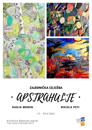 Ova izložba nazvana je Apstrahulje zbog toga što u ovim likovnim radovima zapravo nema motiva koji nije apstrahiran. Autori, Darja i Nikola, u šali će reći da se radi o pahuljama apstrakcije – apstrahuljama. Nije netočno ustvrditi da figuriranje počinje, ali vrlo brzo nestane ili obrnuto, iz korištenih ritmova nanosa pigmenta proviruju katkad prepoznatljivi elementi.Ukoliko bi se igrali detektiva, uočili biste gdjekad neki list, cvijet, otisak stopala, možda kakvu kućicu, oko nje zmiju, zavjesu na prozoru... Ipak, Darjini akrili na platnu odnose tu semantiku likovnog govora u maglice prekrasnih, jakih boja; Nikoline vodene boje miču značenje slikovnog jezika u filigransku plohu. I kako to već bude, nađeni su novi svjetovi; nova flora i fauna koja obitava duboko unutar stvari; i organska i geometrijska; i familijarna nam i sasvim strana.