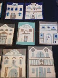 Izložba likovnih radova učenika u produženom boravku OŠ Dragutina Kušlana iz projekta Kreativan paketić (uzmi, napravi i vrati). Mentorica: učiteljica Zdenka Kožić.Tema/motiv: grad zimi, likovna tehnika: kolaž papir.
