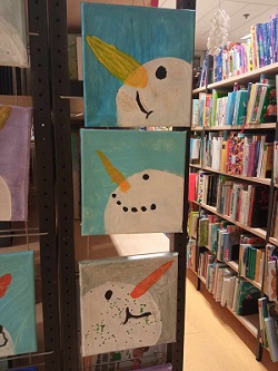 Maleni Balončići na platnu su oslikali vesele snjegoviće bojom za tkaninu te akvarelom andele.