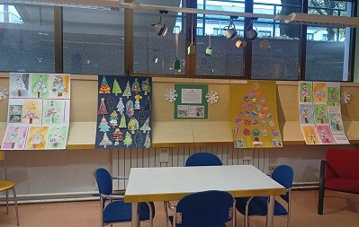 Na panou Odjela za djecu i mlade u blagdanskom ozračju može se razgledati izložba likovnih radova polaznika vrtićke skupine Ljubičica iz DV Sesvete.Pod mentorstvom svojih odgojiteljica, Sanje Horvatić i Mateje Pupovac Škrlec djeca su se tijekom adventskog perioda posvetila istraživanju različitih božićnih sadržaja u neposrednom okruženju i zatim likovnom oblikovanju svojih doživljaja božićnih drvaca.