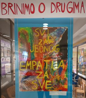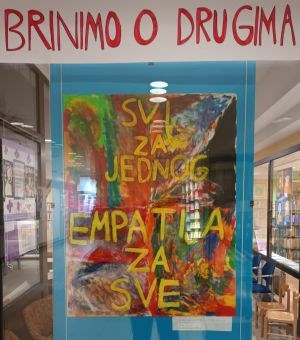 Izložba učeničkih radova Brinimo o drugima rezultat je međuškolskog likovnog projekta OŠ Jelkovec, OŠ Sesvetska Sopnica i OŠ Sesvetska Sela. Cilj projekta bio je potaknuti kod učenika razvoj svijesti o pripadnosti skupini, uvažavanju i prihvaćanju različitosti, toleranciji i pomaganju drugima zauzimanjem vlastitog stava, te svojim nesebičnim djelovanjem.