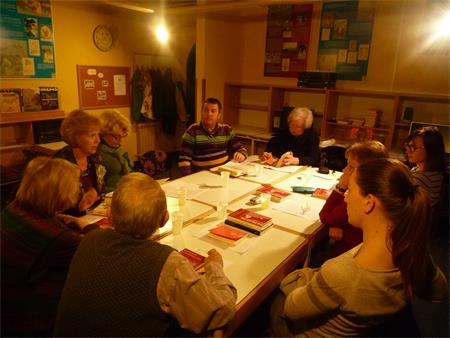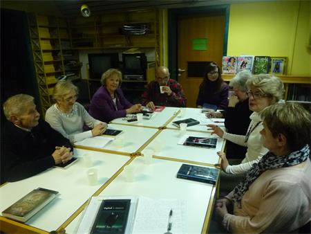 - E. Kishon: Kishon za zaljubljeneNa prvom susretu članovi su se međusobno upoznali i razmijenili dosadašnja iskustva vezana uz čitateljske navike. Voditeljica je predstavila način rada i koncept kluba te iznijela pravila koja se trebaju poštovati. Sastanci se održavaju jedanput mjesečno, a na svakom susretu zajednički se dogovara o kojoj će knjizi biti riječ idućega mjeseca. Nakon izvjesnog vremena klub je dobio ime "Opstanak". Do sada je održan niz susreta, a čitali smo: