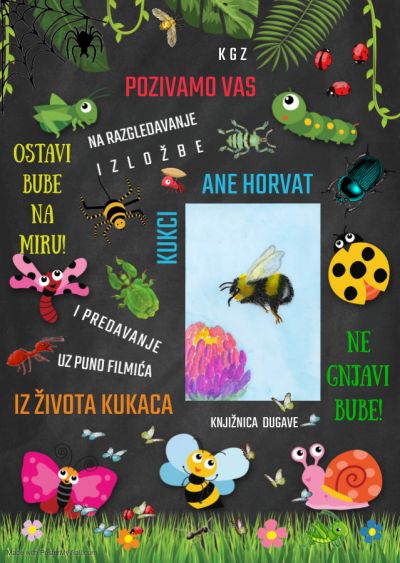 Pozivamo vas na razgledavanje izložbe Kukci, autorice Ane Horvat, učenice četvrtog razreda OŠ Ive Andrića te na predavanje uz puno kratkih filmova iz života kukaca. Izložba i predavanje su zanimljivi starijim vrićkim grupama i nižim razredima osnovne škole, premda nam se i malo stariji školarci mogu pridružiti. Molimo sve zainteresirane vrtićke i školske grupe da nas nazovu u knjižnicu kako bismo na vrijeme dogovorili termin. Dobrodošli u knjižnicu i lijepi bubičasti pozdrav svima!