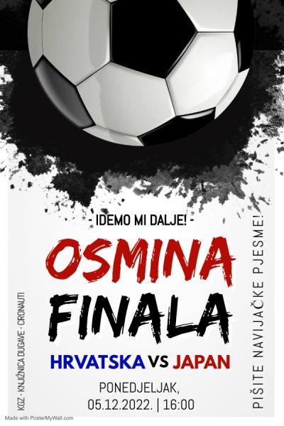 Idemo mi dalje! Pratimo utakmice hrvatske reprezentacije i pišemo navijačke pjesme. Pridružite nam se, sve ćemo stihove poslati našoj reprezentaciji za dodatnu snagu protiv Japana u osmini finala, u ponedjeljak, 5.12.2022. u 16:00. Igraj moja Hrvatska!