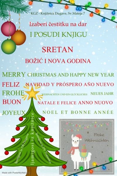 Sretan Božić i Novu godinu žele vam ljamigosi i origami majstori iz knjižnice Dugave! U knjižnici ćete pronaći izdvojene čestitke na dar kao i knjige za posudbu! Uživajte u preznicima i navratite u knjižnicu!