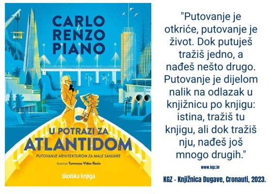 Krenuli smo u potragu za Atlantidom i upoznali neka od arhitektonskih ostvarenja poznatog talijanskog arhitekta Renza Piana kroz zanimljive priče s gradilišta, kao i njegove misli o potrazi za savršenim izgubljenim gradom, njegovom ljepotom koja je sinonim za dobrotu, suosjećanje i zajedništvo među ljudima. U prostoru knjižnice možete pogledati istovjetnu tematsku izložbu do kraja rujna, te prijaviti se za predavanja.