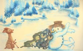 Likovi snjegovića i životinja karakteristični za njezin umjetnički rukopis, odišu ljupkošću s osjećajem mjere, potvrđuju poseban emocionalni slikaričin stav koji nikada ne prelazi u sladunjavost, već stvara bliskost između gledatelja i ilustracije.