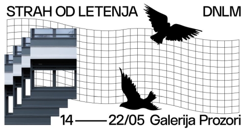 Prostor grada je za Danila Milovanovića mjesto plastičnog zbivanja koje odražava njegove neuralgične točke. Gradbeni materijal koji koristi u svojem umjetničkom radu zato redovito nalazi upravo u jednostavnim fragmentima urbanog tkiva. Stoga je ishodište rada Strah od letenja pronašao upravo u prostornoj situaciji koja uokviruje Galeriju Prozori. Odlučio se „dovršiti” proces obnove prekrivanjem čitave donje etaže identičnom crnom mrežom. Lijepljenjem piktograma ptica po staklu te postavljanjem bodlji u nizu uz prozorske rubove dodatno naglašava stvorenu barijeru. Prisvaja elemente mreže, bodlji i piktograma, kao i njihov vizualni jezik, te ih istovremeno predstavlja kao artefakte i smetnje koje priječe put i pogled. Strah od letenja time dobiva svoj vizualni pečat, a humorna nota do izražaja dolazi kroz izjednačavanje prolaznika_ca s pticama. Upravo smještanje blokirajuće kompozicije na inače pristupačan nivo prve etaže postaje problematično i za ljude, osobito kada se nađu u interakciji s mrežom. Odjednom su u nezahvalnoj poziciji nepoželjnog gosta koji u javnom prostoru može biti, ali ako baš mora.