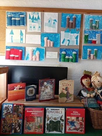 Projekt Knjižnica u vrtiću omogućuje djeci obližnjih vrtića da i u vrijeme kada ne mogu s odgojiteljicama grupno dolaziti u knjižnicu na čitanje priča ipak ostaju u doticaju s knjigama. Tako su odgojiteljice Margareta Jakičić i Maja Babić (skupina Tigrići, DV Šegrt Hlapić) djeci iz svoje skupine posudile sve što smo mogli pronaći o dvorcima i životu u njima. Slušajući priče i proučavajući dječje enciklopedije o tim davnim vremenima, mališani su na svoj način zamišljali i izradili dvorce od tuljaca i kolaža ukrašavajući ih krovićima od papirnatih zdjelica za pečenje kolača. Prilikom tih aktivnosti razvijali su finu motoriku šake, osjetljivost za kombinacije, a različitim igrama na engleskom jeziku koje su osmislile njihove odgojiteljice pozornost i pamćenje. Izložba njihovih radova može se razgledati u prostoru igraonice naše knjižnice.