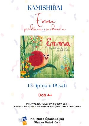 Draga djeco, pozivamo vas na jedno posebno druženje uz kamishibai predstavu o pužici Emi! Predstava je temeljena na najprodavaonijoj njemačkoj slikovnici i potiče djecu da osvijeste svoje vrline i jačaju samopouzdanje.U ovoj predivnoj priči upoznat ćemo pužicu Emu i njezine prijatelje. Dok Ema šeće šumom, pozdravlja svoje prijatelje i divi im se što sve mogu, ali se ujedno pita: Što ja znam dobro?, U čemu sam ja odlična?. Ova nam predivna i topla priča pomaže osvijestiti da svi imamo nešto u čemu smo sjajni.