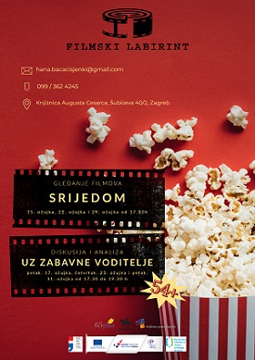 U suradnji s Udrugom Bacači Sjenki pozivamo vas na ciklus besplatnih zabavno-filmskih edukacija Filmski labirint, koji će se održavati online i uživo u multimedijalnoj dvorani. Suradnja je ostvarena u okviru projekta 65 plus Knjižnica grada Zagreba.Filmske projekcije hrvatskih filmova otvorene su za javnost, dok su edukativne radionice predviđene za sudionike na projektu (54+) za što je potrebna prijava na adresu e-pošte: hana.bacacisjenki@gmail.com ili telefonom na broj 099/362-4245.