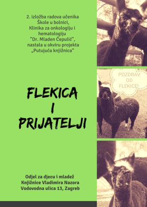 Flekica i prijatelji naziv je izložbe učeničkih radova nastalih kroz program Putujuće knjižnice, ali i kroz redovnu nastavu i izvannastavne aktivnosti koje pohađaju učenici Škole u bolnici Odjela za onkologiju i hematologiju „Dr. Mladen Ćepulić“ Klinike za dječje bolesti Zagreb.A tko je Flekica? U zagrebačkom Zoološkom vrtu živi alpaka kojoj su ime dala djeca hospitalizirana u Odjelu za onkologiju i hematologiju „Dr. Mladen Ćepulić“ Klinike za dječje bolesti Zagreb.