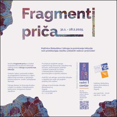 Izložba Fragmenti priča je rezultat svakodnevnih kreativnih aktivnosti radnog centraUdruge za promicanje inkluzije (UPI).