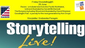 Srebrenka Peregrin, pripovjedačica i profesorica engleskog jezika, uživo u virtualnoj pričaonici predstavit će tri knjige i tri priče: Raven: A Trickster Tale from the Pacific Northwest, told and illustrated by Gerald McDermott, The Bunyans by Audrey Wood and illustrated by David Shannon and Goodnight iPad: A Parody for the Next Generation by Ann Droyd.