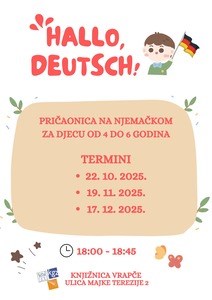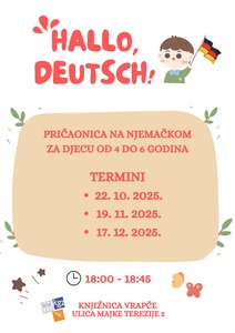 U knjižnici Vrapče održava se pričaonica na njemačkom jeziku za djecu od 4 do 6 godina.