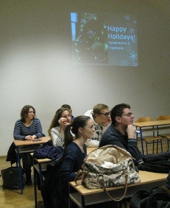 The American studies high school students with their English teacher Snježana Liović from Gornjogradska gimnazija hosted a Christmas gathering on December 18, 2013. Anne Talavera, a Fulbright English Teaching Assistant at the University of Zagreb's Faculty of Teacher Education, met with the students at their school to share Christmas season experiences and traditions with the Croatian students.Just before the Christmas break and upon a successful completion of the autumn/winter term, the American Corner took part in Christmas cultural exchange through sharing a wealth of soul-nourishing rituals and traditions, ...