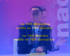 U Ilici 3 se nalazi Državni zavod za statistiku u čijem se izlogu kontinuirano prikazuju statistički podaci na LCD monitoru. Činjenice koje koristim u ovoj instalaciji parafraze su tih podataka. To je preuzeta i tematski preformulirana statistika koja je tehnički izrađena kao vjerna preslika izvornika: iste su boje, isti je font, itd. Podaci iz izloga govore o općenitim karakteristikama Hrvatske: površina obalnog pojasa, broj stanovnika, broj sklopljenih brakova, i tako dalje. Uzeo sam tu stvarnu situaciju i stvarni materijal kao polazište za interpretaciju. Od izvornih podataka Državnog zavoda za statistiku koji, iznoseći brojne podatke o Hrvatskoj, tvore i daju jednu sliku o njoj, kreira se potpuno drukčija slika. Ona se u jednom trenutku otima zdravom razumu, a u drugom približava stvarnosti možda više nego službeni podaci Zavoda za statistiku. Osnovni postupak preobražavanja, da li reći falsificiranja podataka, sastoji se u pretjeranom uvećavanju ili umanjivanju iznesenih statističkih činjenica. Osim toga, kreirani su i novi podaci koji graniče s apsurdom. Preinačivanjem i falsificiranjem službenih statističkih podataka Republike Hrvatske, stvara se 'klasična' tragikomična slika hrvatskog društva koja promatrača, nasmijavajući ga, uvodi u jedan realno moguć (pesimističan) svijet.Video ove instalacije sastoji se od fragmenata nekoliko epizoda emisije Lica nacije emitirane na HRT1 2007. godine. Uzeti su samo oni dijelovi u kojima autor i voditelj postavlja pitanja. Prikazujući ih s dva ekrana naizmjence, smjenjuju se pitanja koja ostaju bez odgovora.