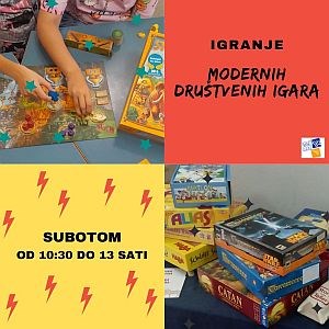 Uz pomoć volonterke i knjižničarke djeca i mladi mogu upoznati i igrati razne moderne društvene igre - Carcassonne, Stone Age, Plaža plaža, Alias, Catan...Igre su namijenjene djeci starijoj od pet godina, a i roditelji su dobrodošli!