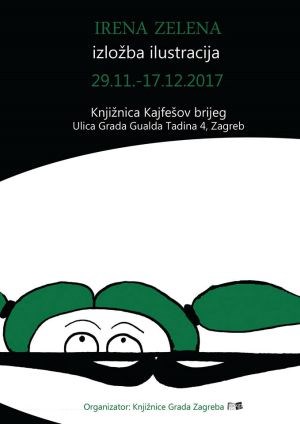 Izložba ilustracija ilustratorice i književnice Irene Zelene iz njezinih autorskih slikovnica Mala noćna mora i Maleni Maks i vila Ljubica, te iz knjiga Tina i tata književnika Zorana Pongrašića i Što sve treba znati o kravati književnika Aljoše Vukovića.Irena Zelena rođena je 1993. u Zagrebu. Od 2013. vodi programe za djecu u sklopu festivala "Pazi, knjiga" i "Ovca u kutiji". Godine 2013. bila je voditeljica i kustosica likovno-književnog natječaja "ODiJELA govore". Vodila je književne programe u okviru festivala u Beču 2015. i 2016. godine. Objavila je dvije autorske slikovnice: Mala noćna mora (hrvatsko-njemačko dvojezično izdanje), Knjiga u centru, 2015. i Maleni Maks i vila Ljubica, Knjiga u centru, 2017. Piše pjesme za Radost, te priče za HRT.