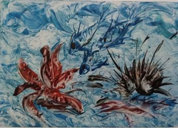 „Pošto se radi o pravom ljetnom terminu održavanja izložbe, naziv se kao takav sam nametnuo. Slike su pune morskih valova, riba i ribica, zvjezdača, konjica ,bajkovitih i realističnih podmorja. Prevladavaju žive boje, ali i samo plavo bijele kombinacije, ovisno da li se radi o crtežima slikarskim flomasterima ili enkaustici. Nadam se da će posjetitelji radosno zaroniti u ovaj moj morski svijet te da će u njima pobuditi pravo ljetno raspoloženje.