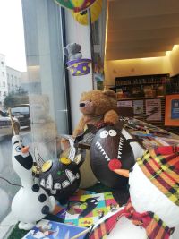Maštoviti likovi poput Malaca, Grubzona ili Svemiraca Gaćoljubaca "iskočili" su iz omiljenih nam slikovnica i oživjeli u našem izlogu.Svima poznati i omiljeni likovi izrađeni su tehnikom kaširanja.