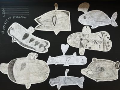 Likovna tehnika: kaširanje i oslikavanje temprom te crtež - olovka i bijela olovka na crnoj podlozi