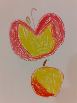 Jabuka vrtićancima te su svi zajedno oslikali svoj doživljaj priče tehnikom pastela.