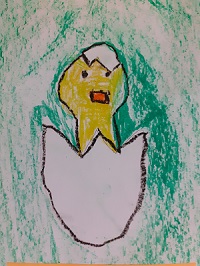 Mješovita odgojna skupina Sovice insprirana slikovnicom Jaje autora Dick Bruna oslikalisu pastelama svoje likove iz priče pod pedagoškim vodstvom odgajateljica Dore Cvetko Jaić