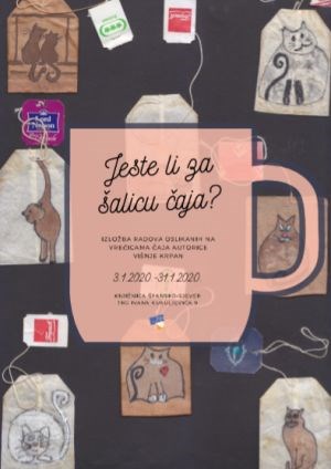 Izložba oslikanih vrećica čaja Višnje Krpan.Pijući čaj, ponekad sami ili u društvu, udubimo se u misli, o nečemu prošlom, sadašnjem ili budućem događaju, opojan miris kao da nas prebaci u neko drugo vrijeme. Popivši čaj ni ne slutimo kako nas dalje ta vrećica čaja može uputiti u neku drugu priču, priču koju nam je satkala naša Višnja Krpan. Višnja slika na tim vrećicama minijature koje opet pričaju svaka za sebe svoju priču. Zahtjevno je to slikanje, ali to slikanje je posebno opušta, kao da bježi od stvarnosti u svoj imaginarni svijet. Estetski oblikuje kompozicije i daje važnost prikazanom. Višnja je rođena 1950. godine u Zagrebu. Prije dvadesetak godina počela se baviti likovnim stvaralaštvom. Na likovne radionice Prečko kod akademsko slikara Marija Slunjskog upisuje se 2013. godine, a 2017. godine počinje polaziti tečaj akvarela u Gerontološkom centru Trešnjevka kod slikarice Ingeborg Crnogaj. Tehnike u kojima se okušala su olovka, ulje, akril, a zavoljela je i akvarel u kojem je pronašla dio sebe. Izlagala je na dvadesetak zajedničkih izložbi, a ovo joj je prva samostalna. Sretno, i neka ovakvih dana gdje se prezentirate bude što više, svestrana ste umjetnica, treba pokazati što radite. Naša treća dob carstvo je znanja koje treba pokazati onima koji su kao i mi, a i mlađim generacijama da se vidi kako se kreativno može živjeti.
