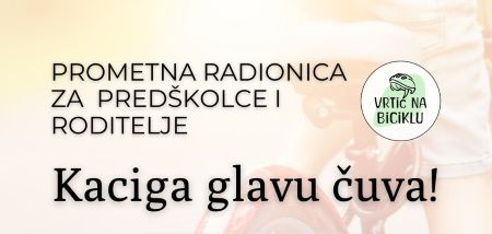 Pozivamo djecu u dobi od 5 do 7 godina i njihove roditelje na edukativnu prometnu radionicu Kaciga glavu čuva! u kojoj će kroz igru i praktične vježbe naučiti zašto je biciklistička kaciga važna i kako pravilno štiti glavu.Aktivnosti su osmišljene tako da djeca i roditelji sudjeluju zajedno. Potrebno je ponijeti vlastitu biciklističku kacigu, jer će djeca na radionici na njoj učiti i vježbati pravilno korištenje.