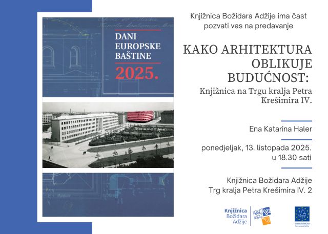 Tema Dana europske baštine "Graditeljska baština - prozor prema prošlosti, pogled u budućnost" 2025. godine naglašava važnost umjetničkih i tehničkih dostignuća arhitekture, zanatskih vještina te nematerijalne kulturne baštine povezane s gradnjom.U okviru te manifestacije Knjižnica Božidara Adžije na Trgu kralja Petra Krešimira IV. u Zagrebu, koja se nalazi u zgradi Radničke komore, arhitektonsko rješenje Vladimira Šterka, Jovana Korka, Đorđa Krekića i Georga Kiverova (1935. - 1938.), dala je inicijativu za postavljanje klupe za čitanje s policom za knjige kako bi revitalizirala prostor ispred Knjižnice i pretvorila ga u javno mjesto za druženje, što je i izvorna funkcija trga. Postavljanjem klupe s policom za knjige Knjižnica želi promicati ekološku svijest recikliranjem starih knjiga, čime se smanjuje proizvodnja novih i emisija CO2, i ideja je da izložene knjige prolaznike potaknu na čitanje. Knjige su dio knjižničnog otpisa čime im se produžava upotreba (knjige iz druge ruke).