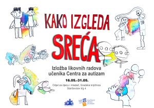 Izložba Kako izgleda sreća? predstavlja radove učenika Centra za autizam koji su svojim likovnim ostvarenjima odgovorili na jedno od najkompleksnijih, a ipak tako jednostavnih pitanja - što je sreća?Za nas, sreća je mnogo više od osmijeha ili trenutka radosti. Ona je poput paleta boja koje se stapaju u predivnu simfoniju života. Učenici CZA su nam kroz svoje radove otvorili vrata u svoj svijet sreće, pokazujući nam što ih čini sretnima, koristeći simboliku boja i asocijativnost motiva.