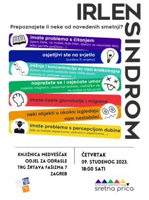 Više o Irlen sindromu možete pročitati na internetskim stranicama Edukacijsko-savjetodavnog centra Sretna priča https://www.sretnaprica.