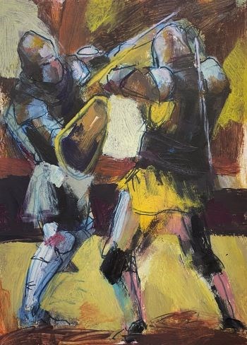 Karlo Fintić rođen je 1997. godine u Zagrebu. Završio je Školu primijenjene umjetnosti i dizajna, smjer slikarstva. Na Akademiji likovnih umjetnosti 2019. godine upisuje prijediplomski sveučilišni studij slikarstvo. Pod mentorstvom prof. Matka Vekića, stječe titulu prvostupnika sveučilišnog prijediplomskog studija slikarstva 2023. godine. Trenutno pohađa 1. godinu diplomskog studija slikarstva. U svojem dosadašnjem radu bavi se motivima srednjovjekovnih vitezova i raznim prikazima iz drugog svjetskog rata, kojima je kroz život bio izložen kroz različite izvore. Te motive obrađuje bez da eksplicitno govori o onome što je prikazano, već ih koristi kao podlogu za esperimentiranje unutar slikarskog medija. Nadalje, preko motiva koji su sveprisutni u današnjoj kulturi, preispituje granicu onoga što se može smatrati “ozbiljnom” umjetnošću, odnosno bavi se pojmom slikarstva kao takvog.