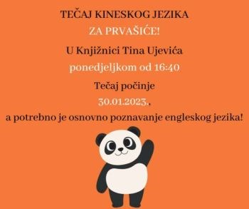 TEČAJ KINESKOG JEZIKA za prvašiće u Knjižnici Tina Ujevića u suradnji s Konfucijev institut Sveučilišta u Zagrebu.Počinjemo u ponedjeljak, 30.01. u 16:40!