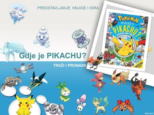 Pozivamo vas na najzabavnije predstavljanje knjige (ikada do sada) u kojoj poslije upoznavanja s određenim pokemonima tražimo iste među mnoštvom drugih istog tipa koji žive u različitim regijama. Glavni zadatak je pronaći Pikachua koji se vješto skriva u svakoj od predstavljenih regija. Ako želite nešto naučiti i dobro se zabaviti, ako vam je iz ove najave iša jasno, odnosno nejasno, dođite u knjižnicu Dugave i sve će vam se razjasniti na Pokemaniji! Moraš uhvatit' neki termin!