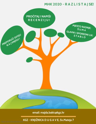Pridružite nam se u čitanju i pisanju recenzija na temu "Mjesto radnje - ŠUMA: Glavni i sporedni lik - STABLO" kao priprema u virtualnom sudjelovanju na ovogodišnjoj manifestaciji Mjeseca hrvatske knjige koja se održava pod geslom "Razlistaj se!". Pa, vi se ne možete razlistati kao stablo ali možete o njemu puno naučiti kroz ponuđene knjige i uživati u avanturama u kojima je ono glavni ili sporedni lik. Napišite kritički osvrt ukoliko ste pročitali neki naslov na temu, a ne nalazi se u našim preporukama. Možda se ne možete razlistati ali svakako se možete rasčitati i raspisati, a na koncu i razlistati našu Riznicu recenzija. Recenzije šaljite na email: majda.bakic@gmail.com, knjige potražite u najbližoj knjižnici!