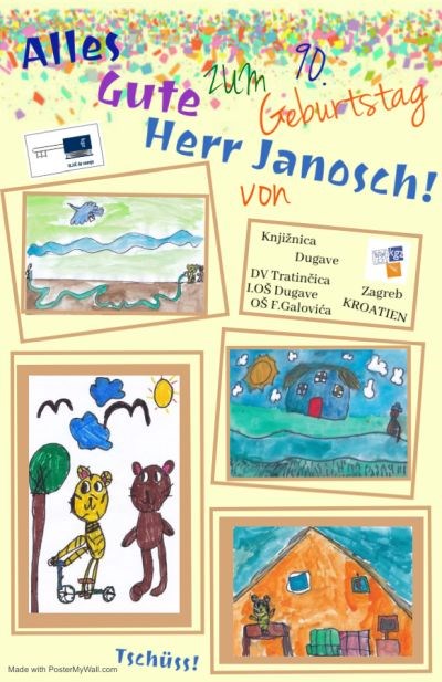Pročitali smo Janoscheve slikovnice i oslikali omiljene likove i scene. Koliko nam je veselja donio Mali Tigar, Mali Medo i Tigrica patka pogledajte u virtualnim galerijama, na ppt prezentacijama ili u prostoru knjižnice. Zahvaljujemo svim odgajateljicama, učiteljicama i mamama što su pomogle prenijeti dio Janoscheve čarolije na djecu, a svi skupa želimo sve najbolje gospodinu Janoschu za njegov 90. rođendan! Alles gute zum 90. Geburtstag, Herr Janosch! Izložba je u prostoru knjižnice do 25.3.2021.