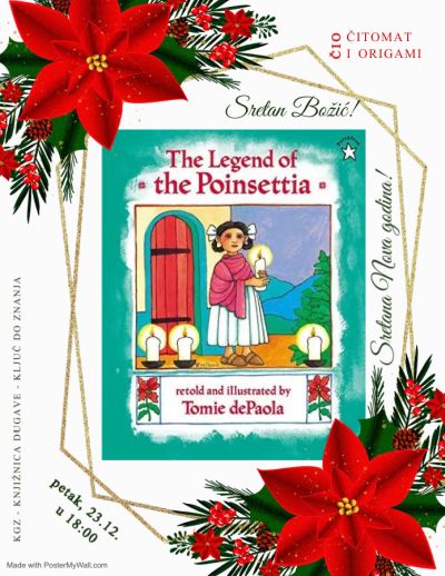 U Meksiku je nazivaju flor de la Nochebuenao, cvijet Svete noći. Zovu je i poinsettia prema Joelu Robertsu Poinsettu koji ju je donio u Sjevernu Ameriku 1828. Ona je simbol ljubavi i dobrih želja, donosi veselje i oplemenjuje svaki prostor, a i ljude koji ju poklanjaju ili dobiju na poklon. Legendu o Božićnoj zvijezdi prepričao je poznati američki pisac i ilustrator Tomie dePaola. Pridružite nam na božićnoj radionici čitanja i izrade origamija. Sretan Božić i Nova godina!