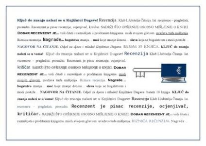 Pridružite nam se u pisanju recenzija knjiga zadanih u ovogodišnjem Nacionalnom kvizu za poticanje čitanja, ali i knjiga po vašem izboru. Sve ćemo recenzije urediti i postaviti na našu stranicu te u Riznicu recenzija. Na završnoj svečanosti Nacionalnog kviza koja će se održati 15. studenog u 12:00 sati u Nacionalnoj i sveučilišnoj knjižnici svoje će recenzije čitati recenzentice, Ana, Irena i Maša, učenice četvrtog razreda OŠ Frana Galovića i OŠ Dominik Savio.