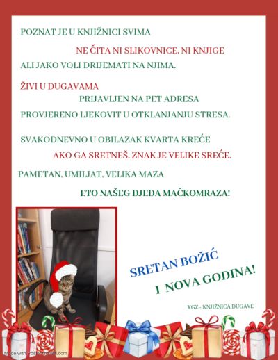 Sretan Božić i Nova Godina uz stihove o pravom Djedu Mačkomrazu i prigodne crtiće.