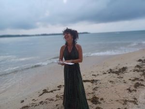 Umjetnica će predstaviti ručno uvezenu zbirku poezije Brodarica, koja miriši po moru, biljkama i brodu, te slikovnicu za odrasle Riječ.