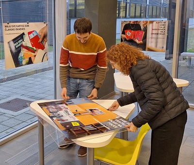 U postavljanju izložbe u Jelkovcu sudjelovali su Angeles i Javier, polaznici Erasmus+ programa iz Španjolske, tijekom praćenja rada u Knjižnicama grada Zagreba.