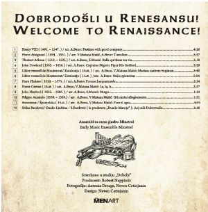 Ansambl za ranu glazbu "Minstrel", koji djeluje već dvadesetak godina, koncertno će predstaviti svoje novo CD izdanje "Dobrodošli u renesansu", na kojem su odabrane skladbe iz njihova repertoara. Izdanje je objavila izdavačka kuća Menart.