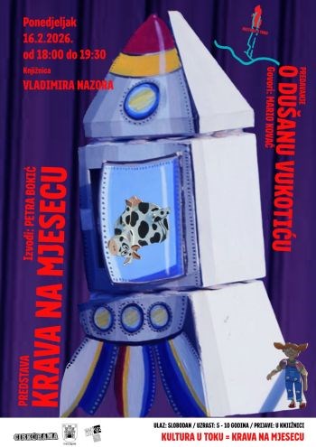 Pođite s nama na muuuuzbudljivo putovanje na Mjesec!Udruga Cirkorama za sve malene ljubitelje umjetnosti i znanosti donosi uzbudljivu lutkarsku predstavu „Krava na Mjesecu“ u izvedbi Petre Bokić te djeci prilagođeno predavanje Marija Kovača o Dušanu Vukotiću.