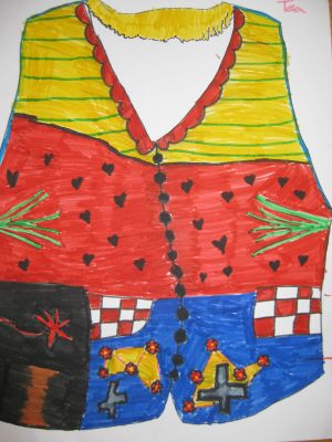 Sat likovnog bio je posvećen jednom dijelu narodne nošnje koji se često pojavljuje u mnogo divnih varijacija kao dio narodnih nošnji naših krajeva, a to je –prsluk ili, kako bismo rekli u ovom našem okruženju, lajbek.